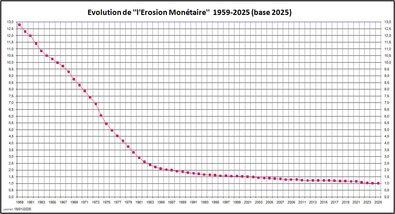 Pour établir des comparaisons entre budgets, nous avons tenu compte de l’érosion monétaire fournie par l’indice INSEE . Le graphique ci-dessous indique le coefficient ‘multiplicateur’ pour tenir compte de l’érosion monétaire