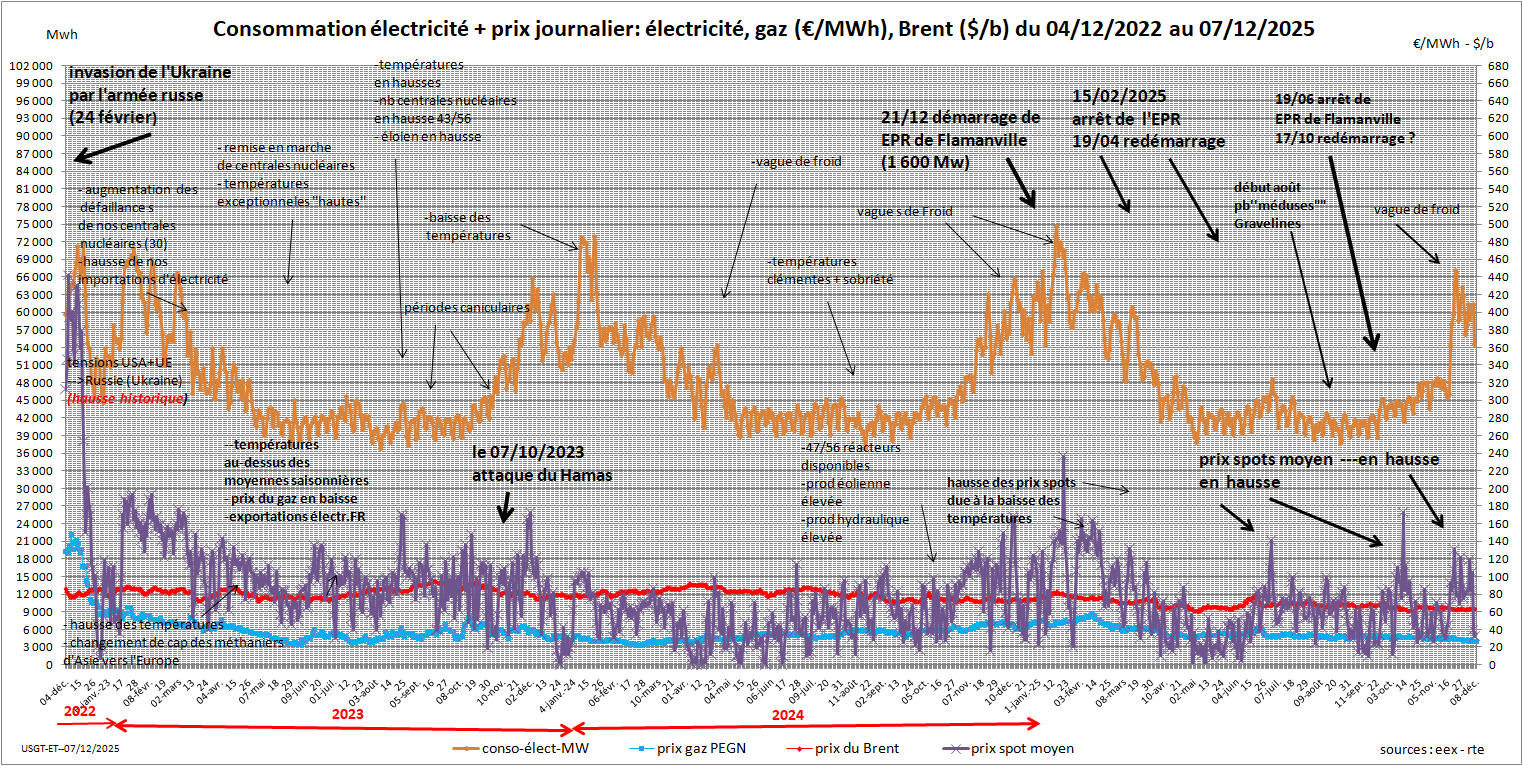 prix ''spot moyen'' est en baisse... problèmes à la centrale de