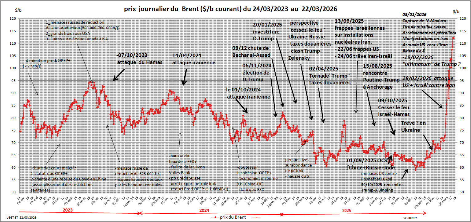 monde...le Brent clôturait vendredi (20/03) à 112,19 $/b après une