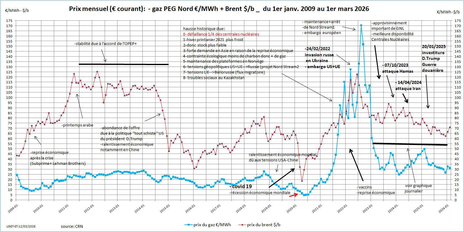 $/b (+11,3%) et le gaz reste stable autour des 50 €/Mwh...au cours