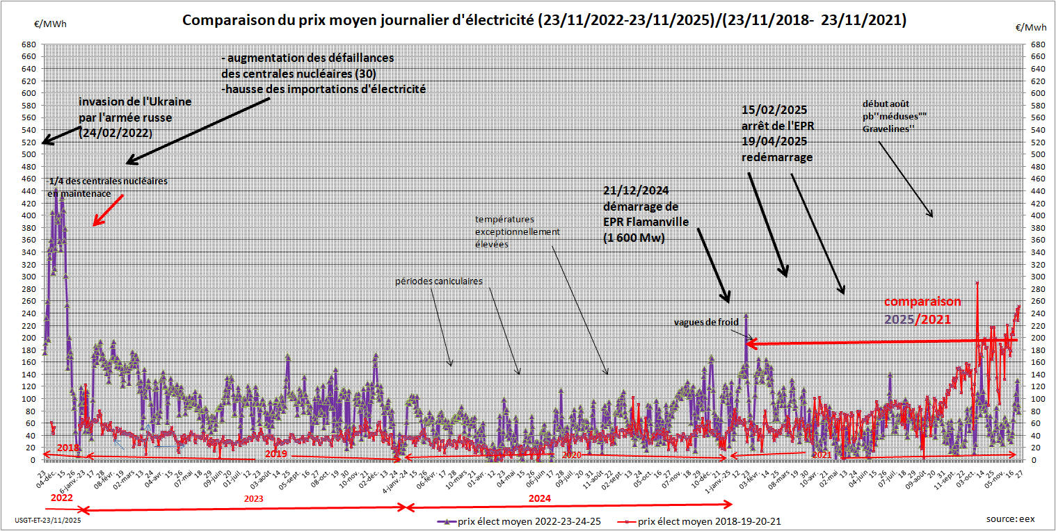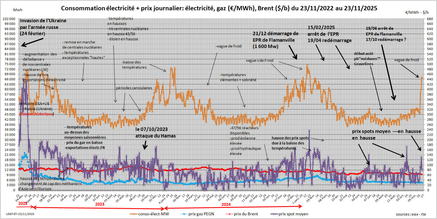prix ''spot moyen'' est en baisse... problèmes à la centrale de